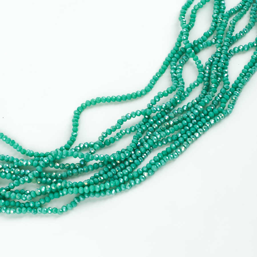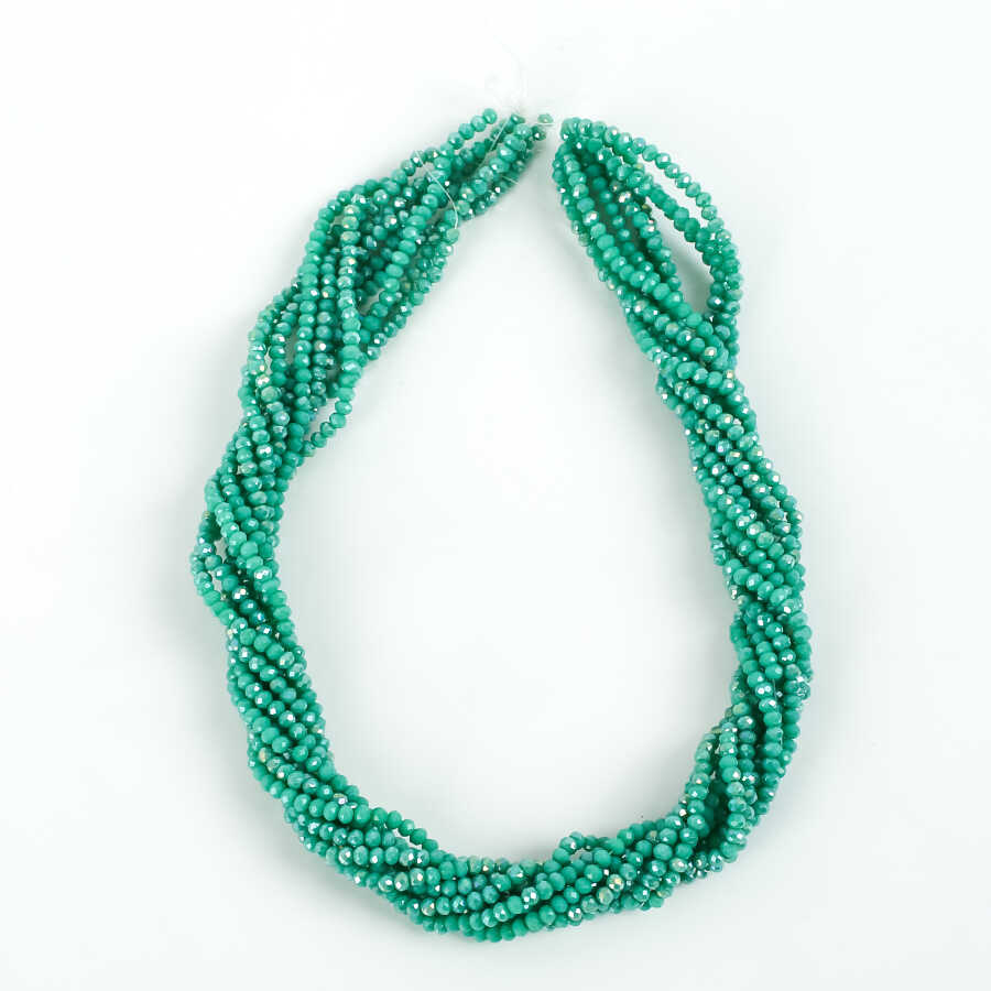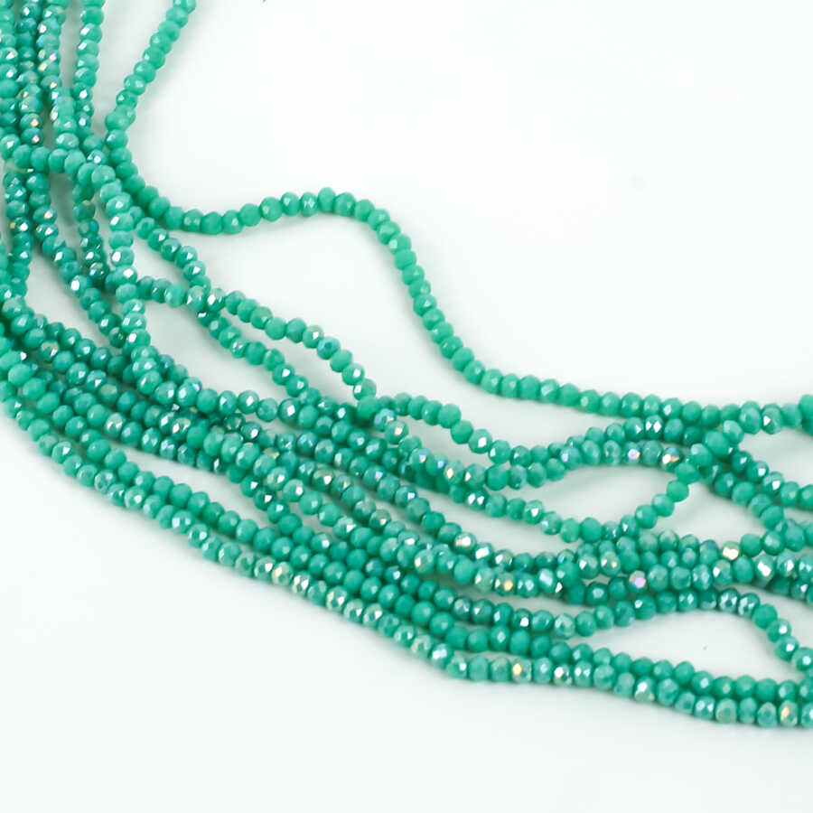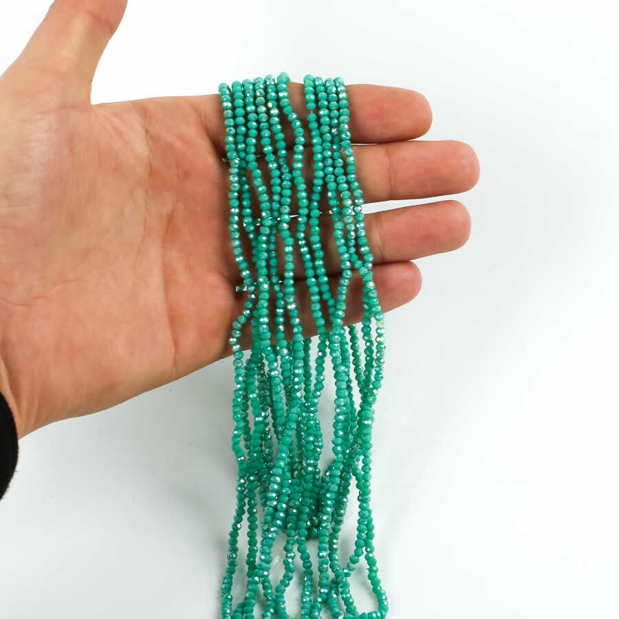 1 Dizi (145-155 Adet)- 2 mm Yassı Kristal Cam Boncuk Dizisi Mat Janjanlı Turkuaz-Yeşil Renk 1.Kalite