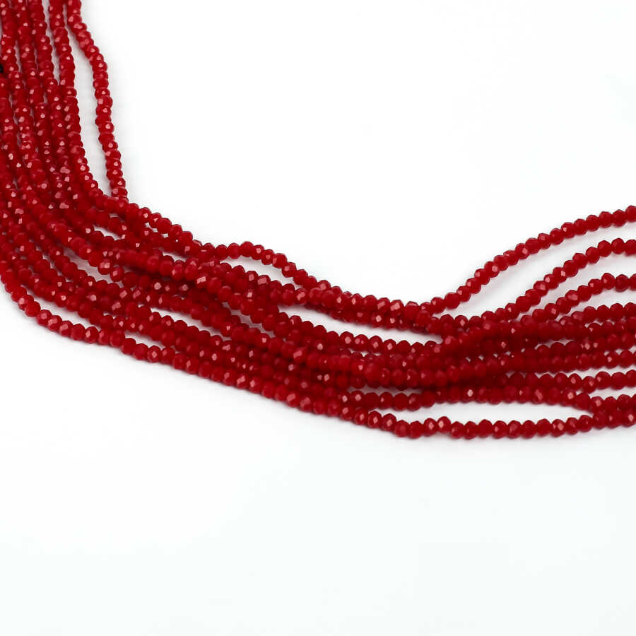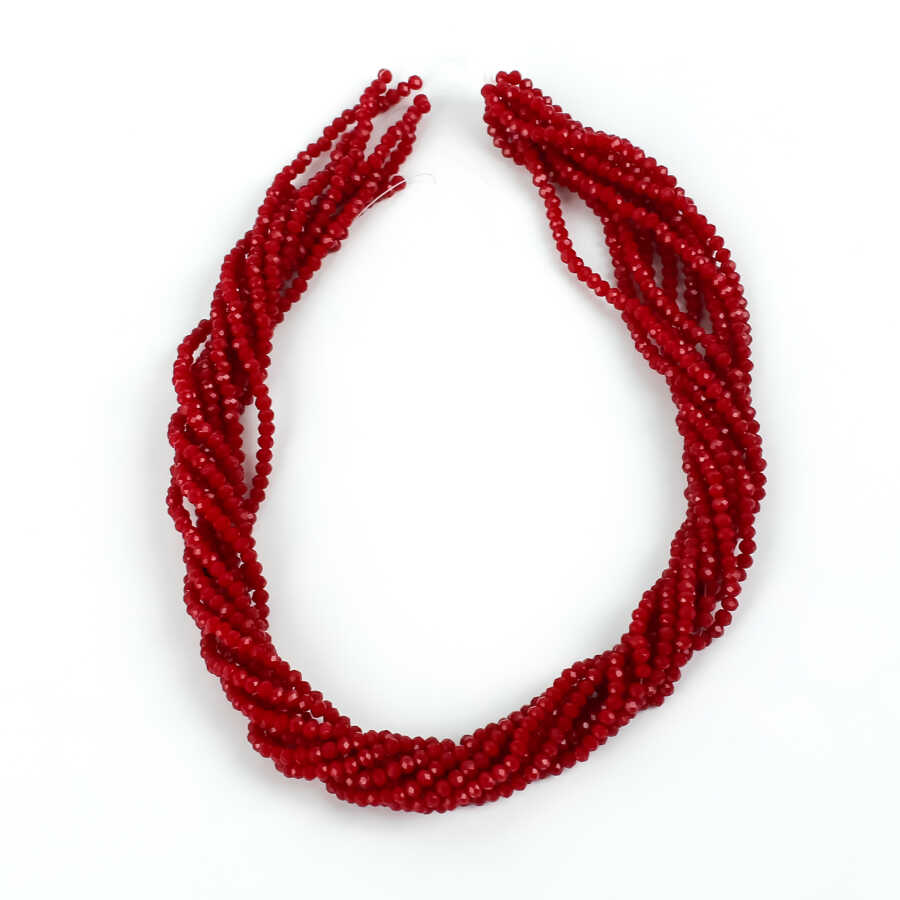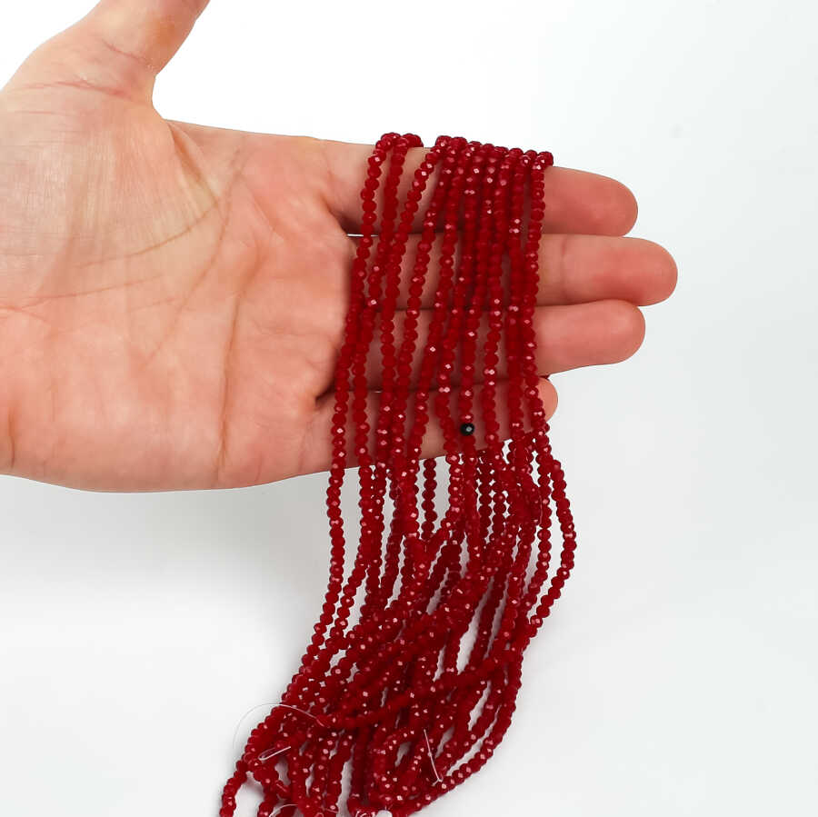 1 Dizi (145-155 Adet) - 2 mm Yassı Kristal Cam Boncuk Dizisi Mat Koyu Kırmızı Renk 1.Kalite
