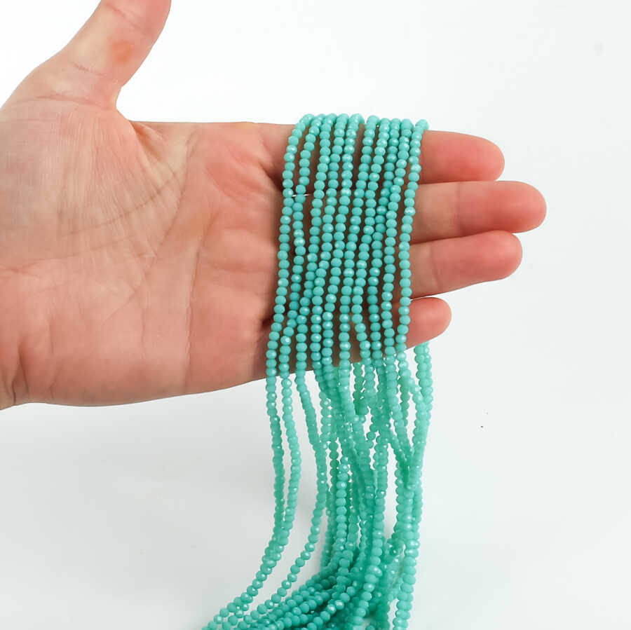 1 Dizi (145-155 Adet) - 2 mm Yassı Kristal Cam Boncuk Dizisi Mat Turkuaz Renk 1.Kalite