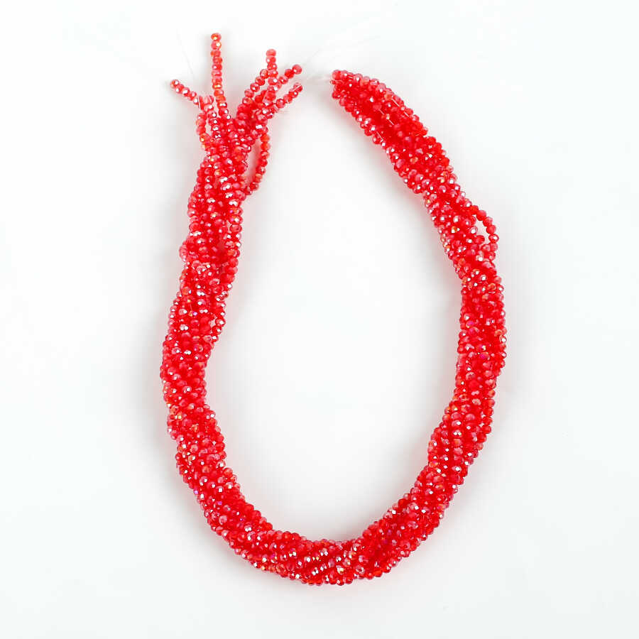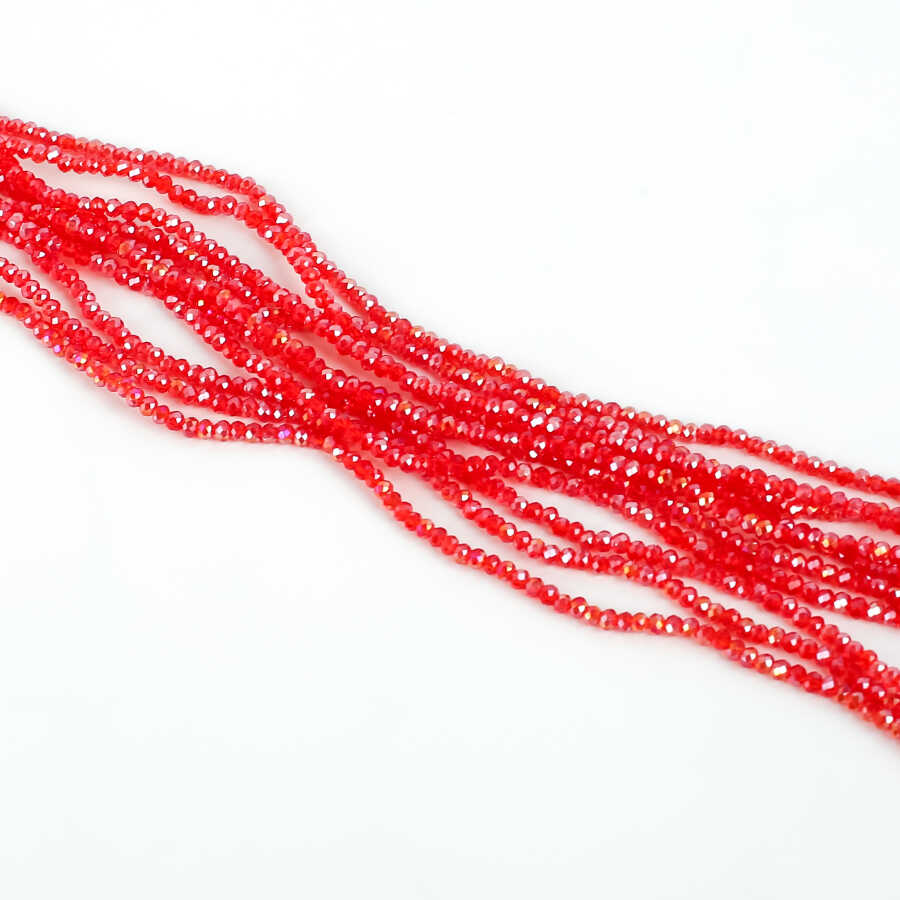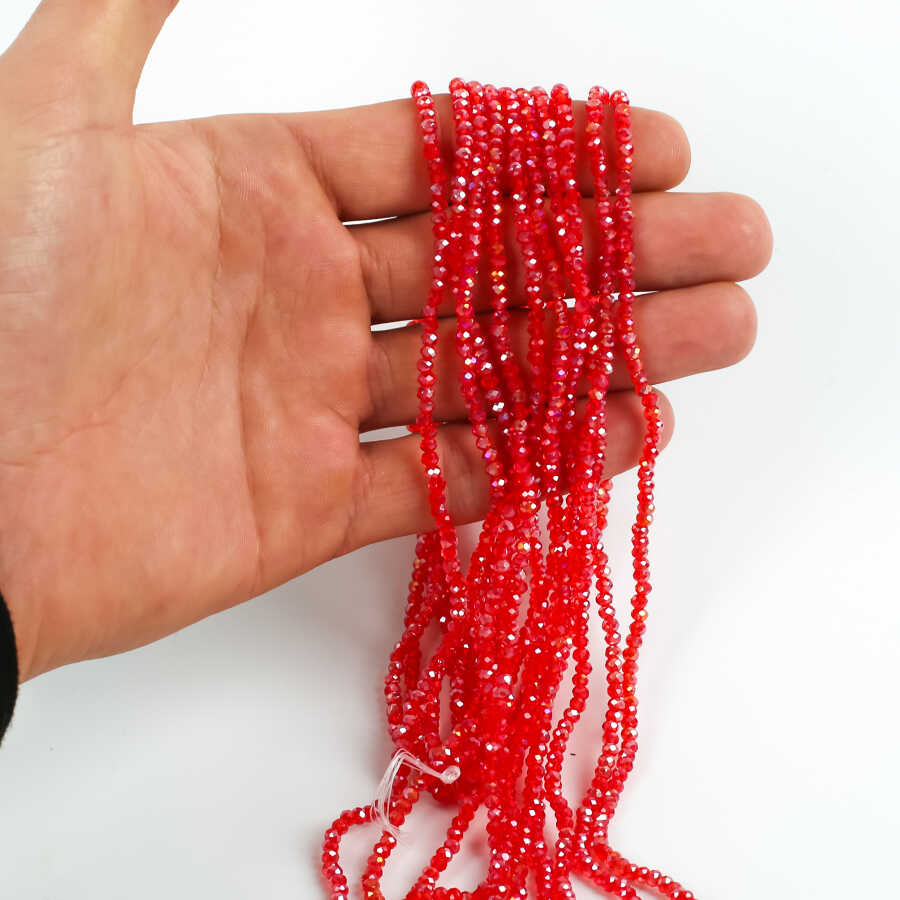 1 Dizi (145-155 Adet) - 2 mm Yassı Kristal Cam Boncuk Dizisi Şeffaf Janjanlı Kırmızı Renk 1.Kalite