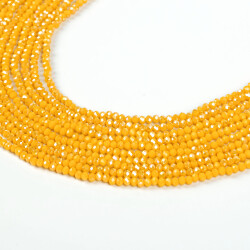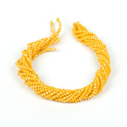 1 Dizi (40 cm - 130 Adet) - 4 mm Yassı Kristal Cam Boncuk, Mat Janjanlı Sarı Renk Boncuk Dizisi