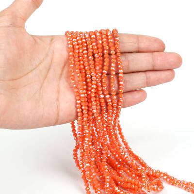 1 Dizi (40 cm - 130 Adet) - 4 mm Yassı Kristal Cam Boncuk, Mat Janjanlı Turuncu Renk Boncuk Dizisi