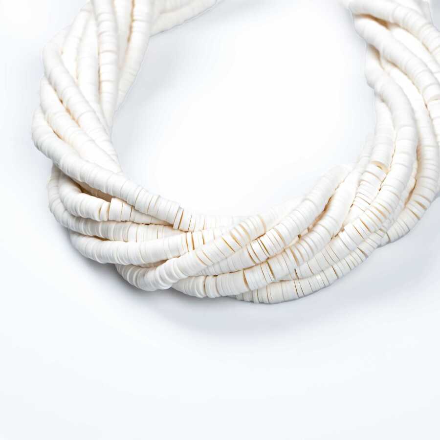 1 Dizi (40 Cm) - 6 Mm Fimo Boncuk, Beyaz Renk Polimer Kil Fimo Boncuk Dizisi, Hamur Boncuk