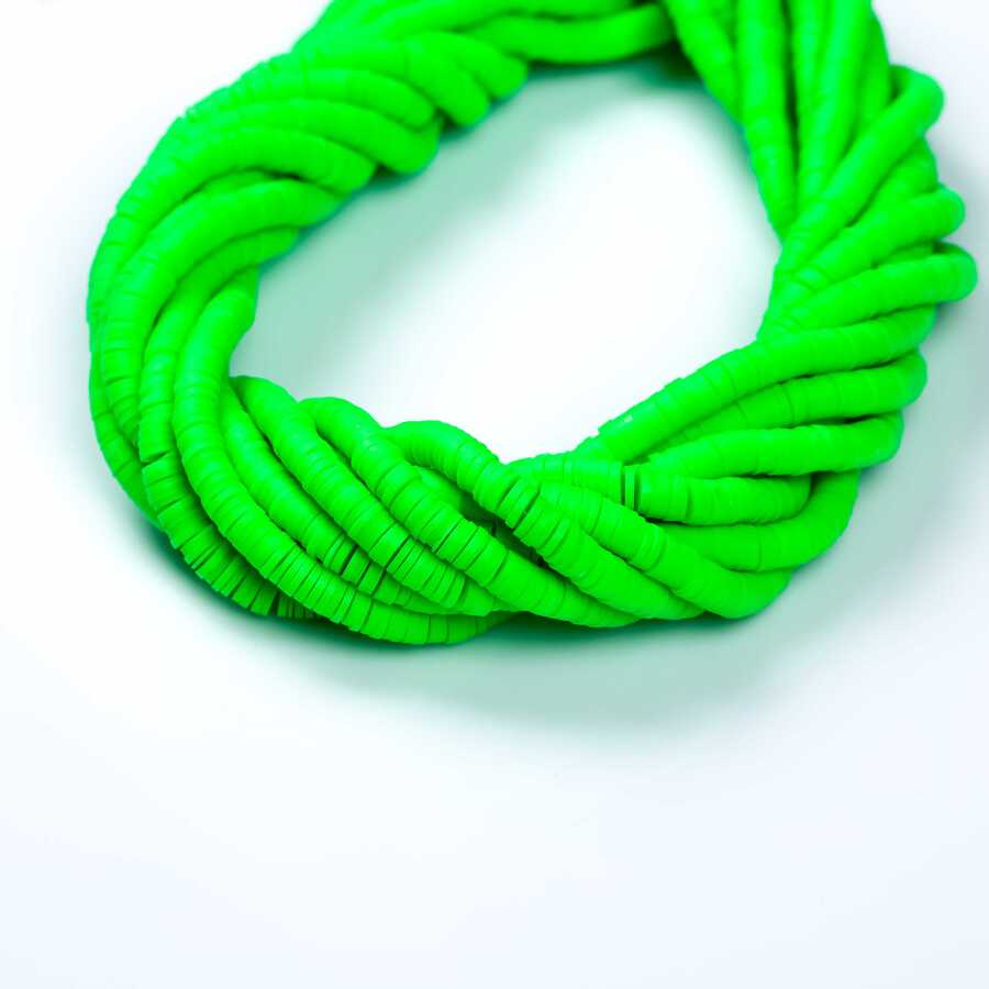 1 Dizi (40 Cm) - 6 Mm Fimo Boncuk, Fosfor Yeşil Renk Polimer Kil Fimo Boncuk Dizisi, Hamur Boncuk