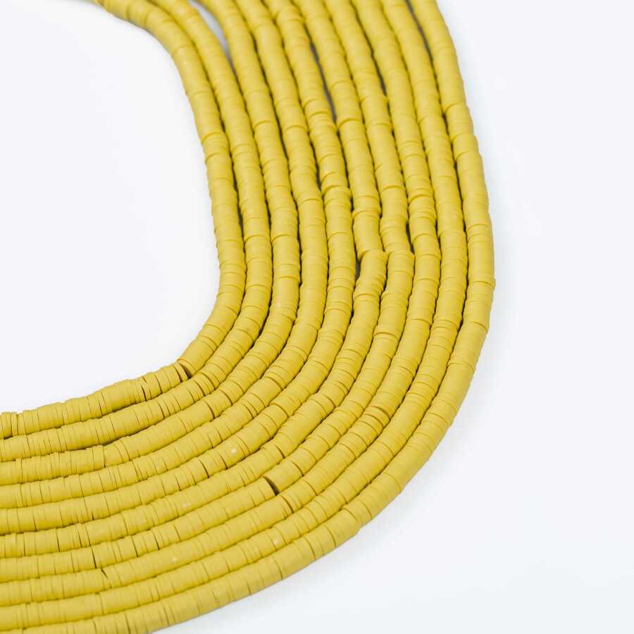 1 Dizi (40 Cm) - 6 Mm Fimo Boncuk, Hardal Renk Polimer Kil Fimo Boncuk Dizisi, Hamur Boncuk