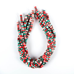 1 Dizi (40 Cm) - 6 Mm Fimo Boncuk, Yeşil-Kırmızı-Beyaz Renk Polimer Kil Fimo Boncuk Dizisi, Hamur Boncuk