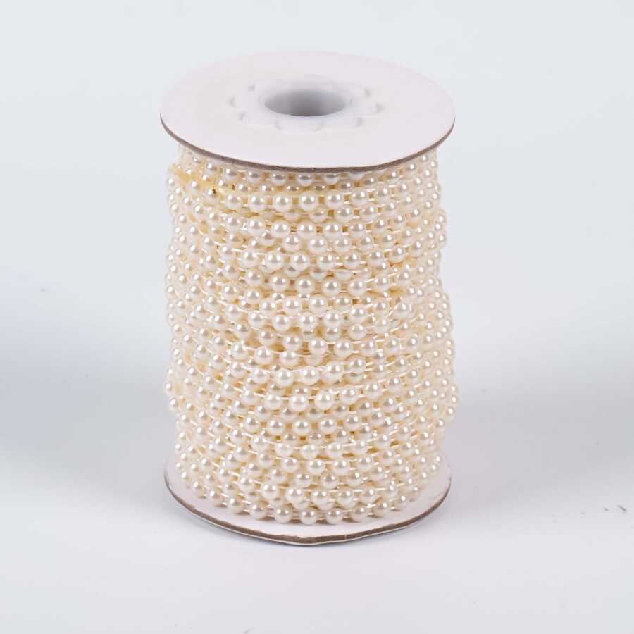2 Metre - 4 mm Şerit Yarım İnci Boncuk, Krem Renk Şerit Yarım İnci Plastik Boncuk, Dizili Yarım İnci Şerit