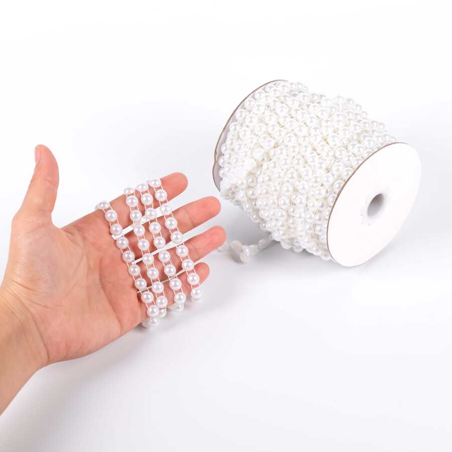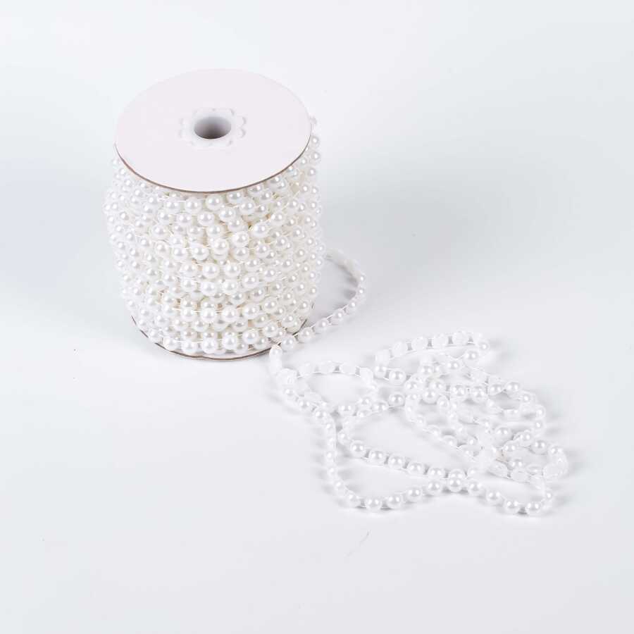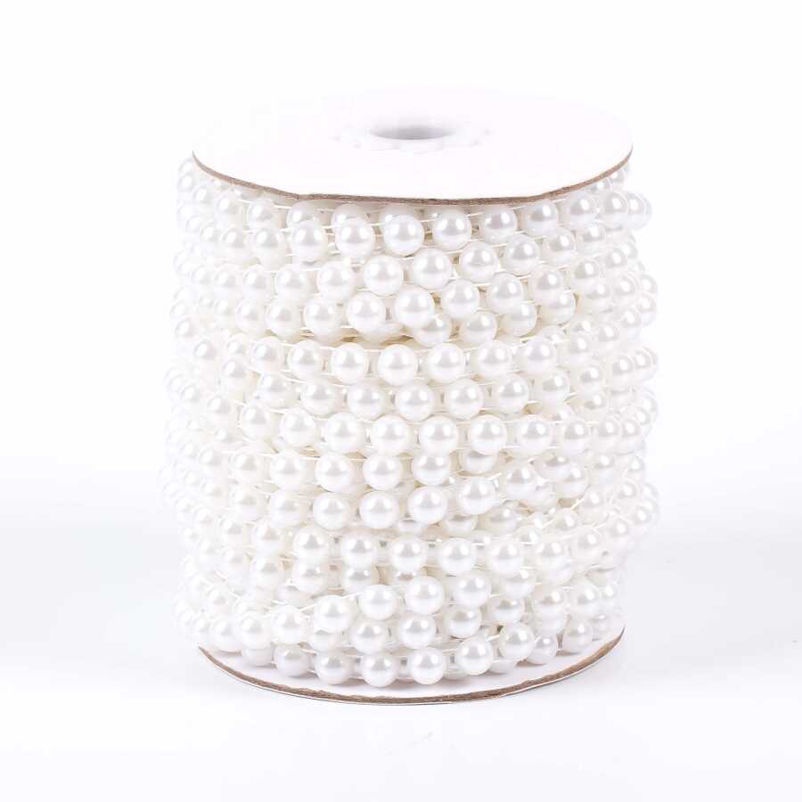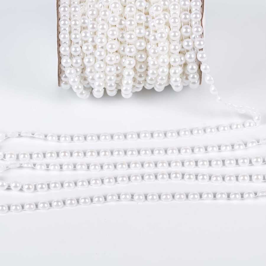 2 Metre - 8 mm Şerit Yarım İnci Boncuk, Beyaz Renk Şerit Yarım İnci Plastik Boncuk, Dizili Yarım İnci Şerit