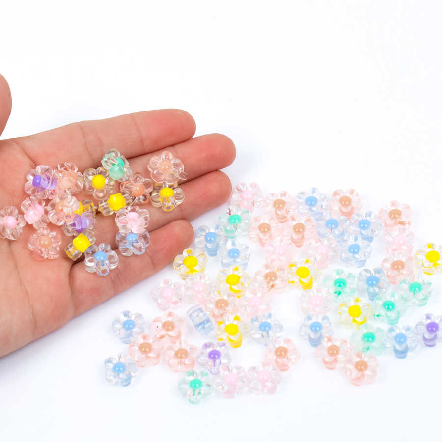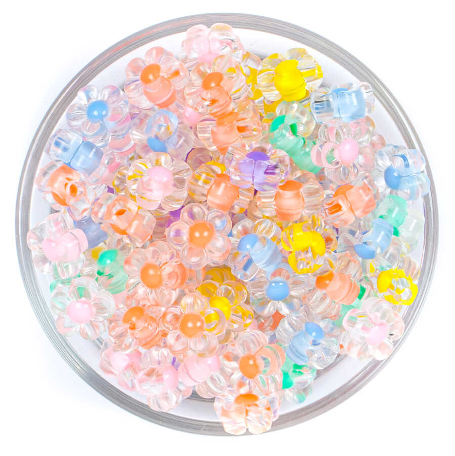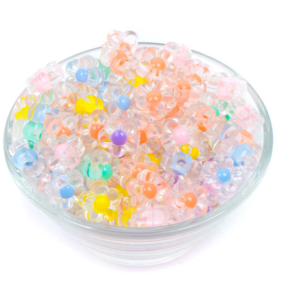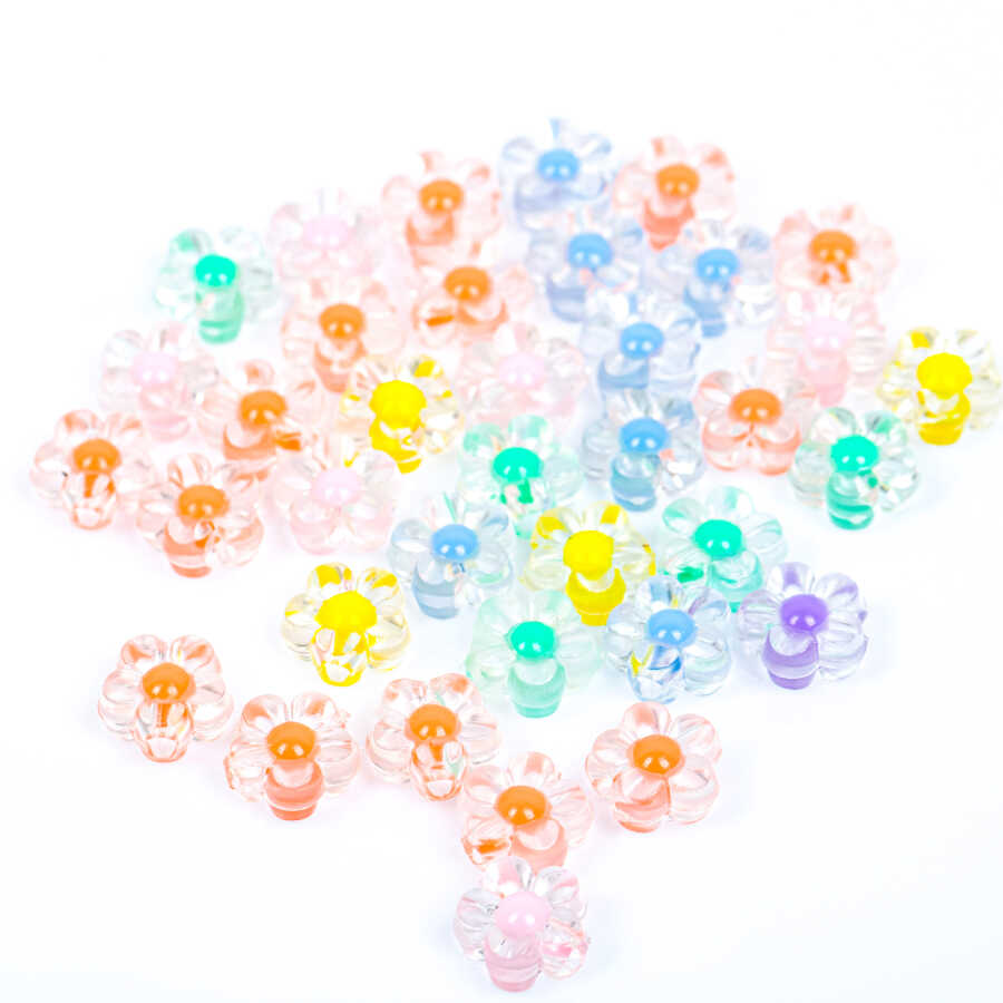 25 Gram - 10 mm Karışık Renkli İçi Boncuklu Papatya Çiçek Boncuk, ( 25 gram - 43-45 Adet Arası )