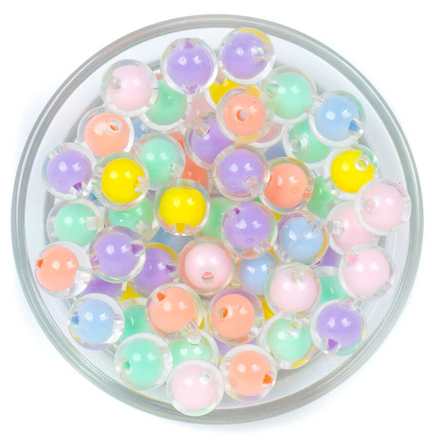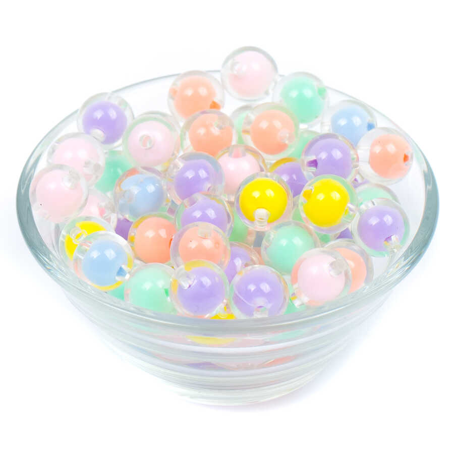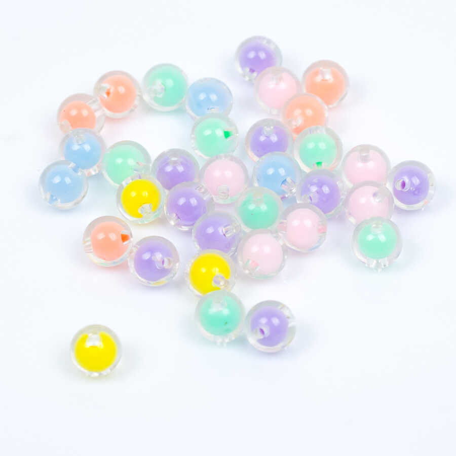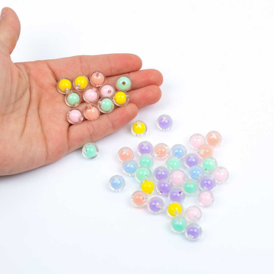 25 Gram - 10 mm Karışık Renkli İçi Boncuklu Yuvarlak Boncuk, ( 25 gram - 24-26 Adet Arası )