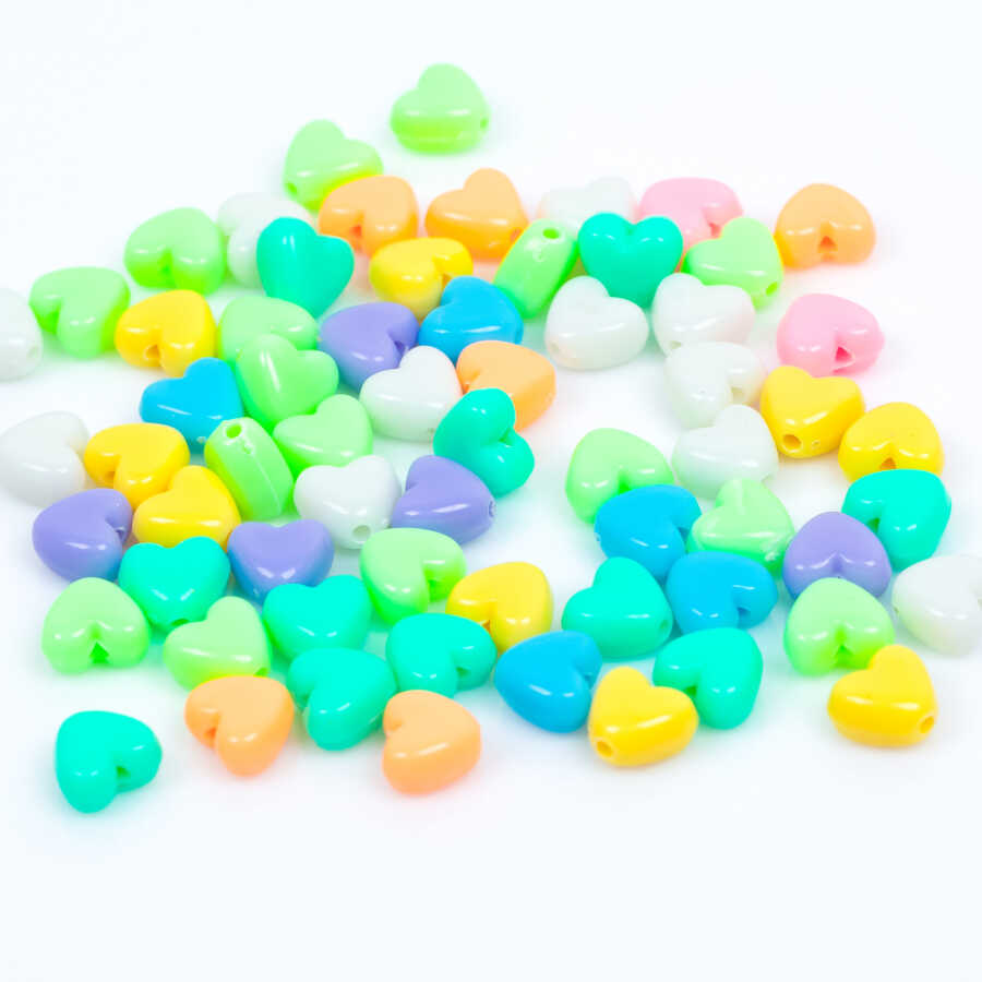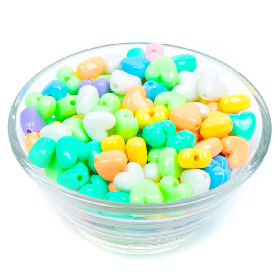 25 Gram - 10 mm Pastel Karışık Renkli Kalp Plastik Boncuk, ( 25 gram - 60-62 Adet Arası )