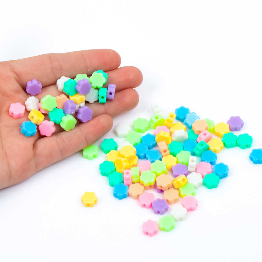 25 Gram - 10 mm Pastel Karışık Renkli Papatya Plastik Boncuk, ( 25 gram - 78-80 Adet Arası )