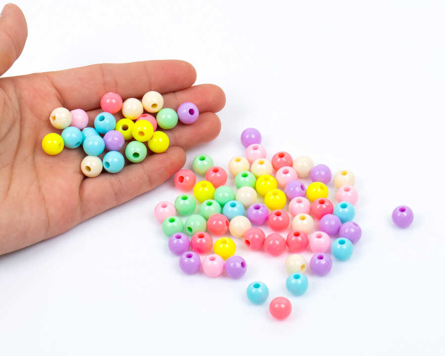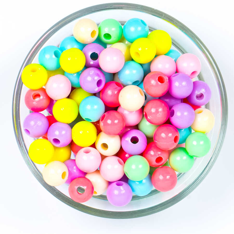 25 Gram - 10 mm Pastel Karışık Renkli Yuvarlak Plastik Boncuk, ( 25 gram - 50-55 Adet Arası )