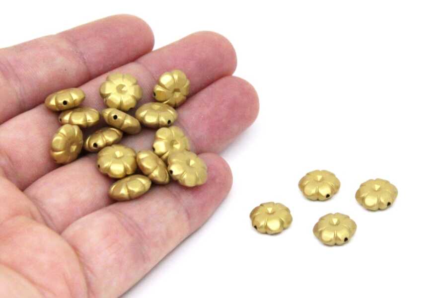 25 Gram - 11 mm Çiçek Desen Boncuk, Altın Renk, Plastik Boncuk. 1. Kalite ( 25 Gram - 78-80 Adet )