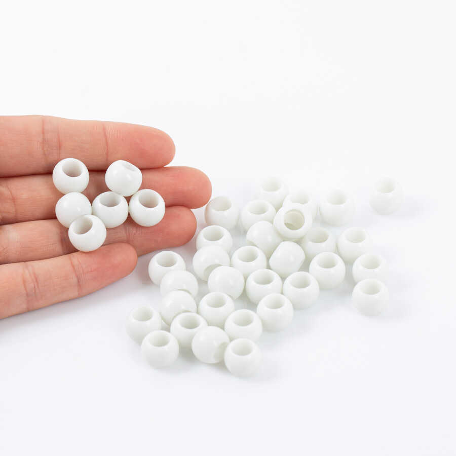 25 Gram - 12 mm Beyaz Renkli Yuvarlak Plastik Boncuk, ( 25 gram - 41-43 Adet Arası )