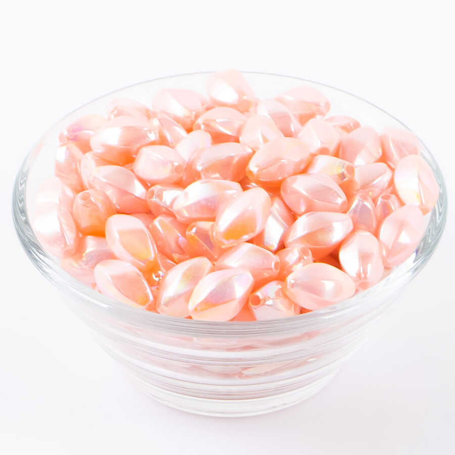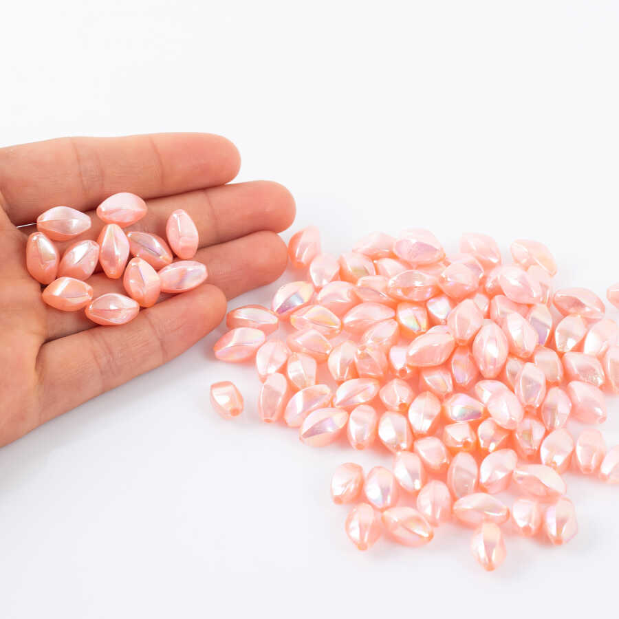 25 Gram - 13 mm Janjanlı Açık Pembe Renkli Oval Plastik Boncuk, ( 25 gram - 52-54 Adet Arası )