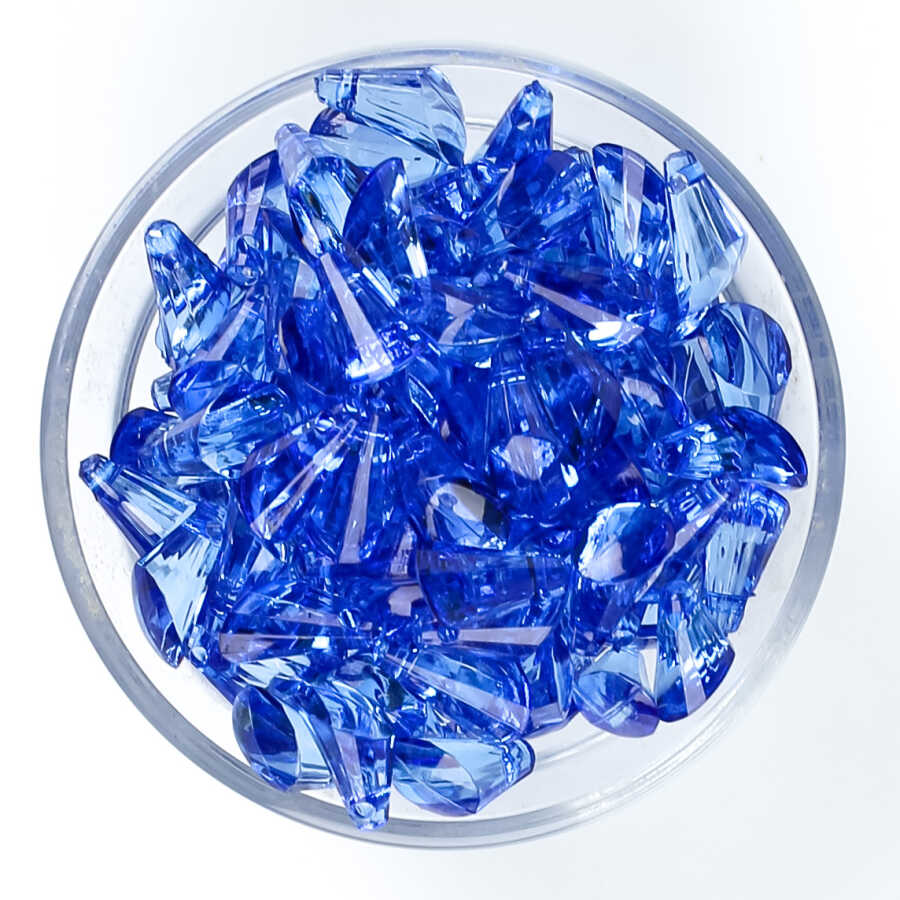 25 Gram - 17 mm, Mavi Renk Akrilik Boncuk, Kesik Piramit Model Boncuk, (25 gr - 42-45 Adet)