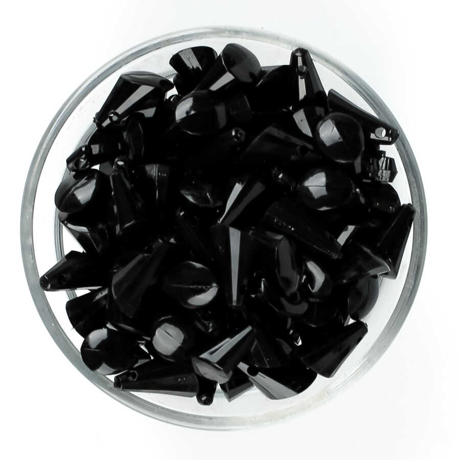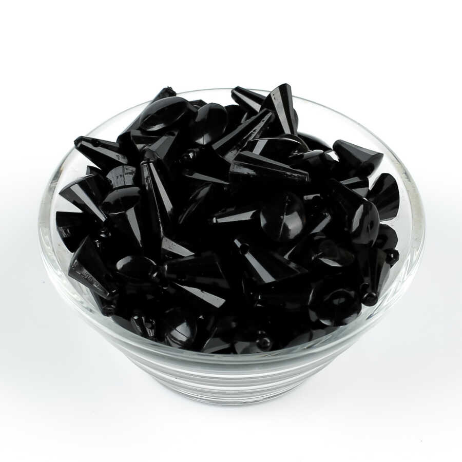 25 Gram - 17 mm, Siyah Renk Akrilik Boncuk, Kesik Piramit Model Boncuk, (25 gr - 42-45 Adet)