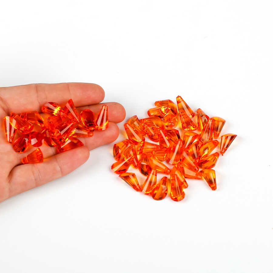 25 Gram - 17 mm, Turuncu Renk Akrilik Boncuk, Kesik Piramit Model Boncuk, (25 gr - 42-45 Adet)