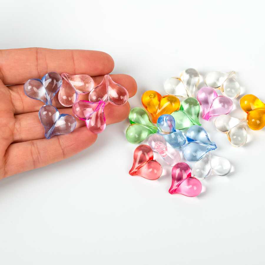25 Gram - 18 mm, Karışık Renk, Kalp Akrilik Boncuk, Takı Ve Süs Boncuğu, (25 Gram - 12-13 Adet)