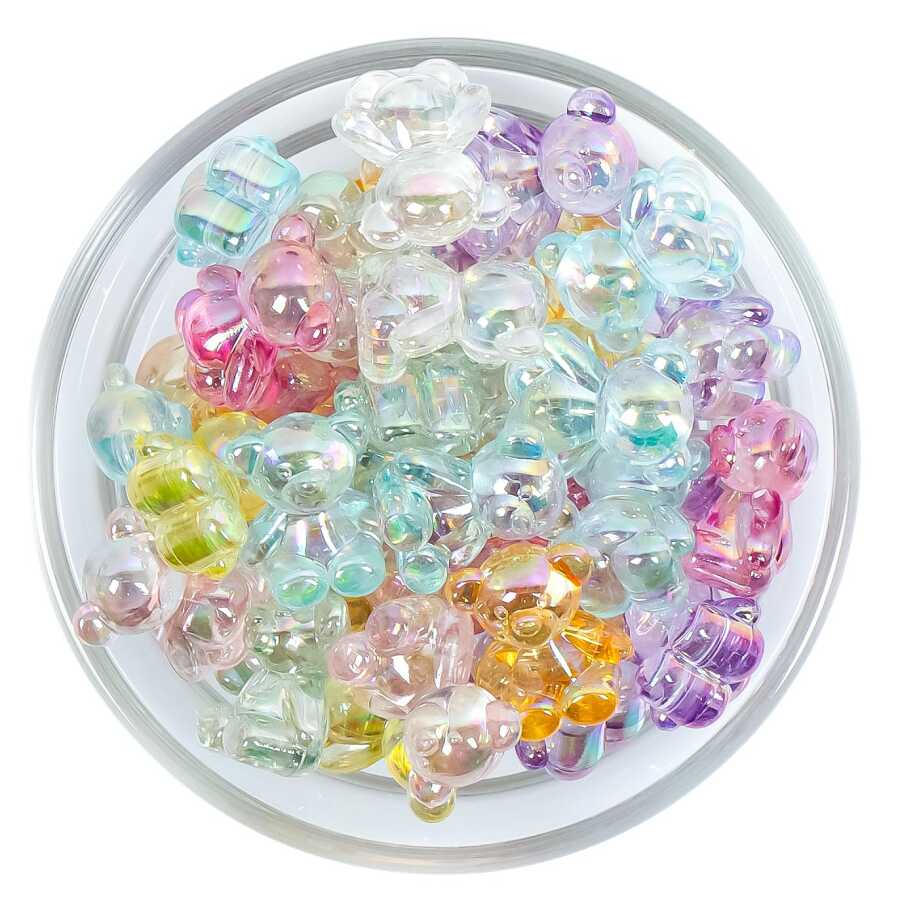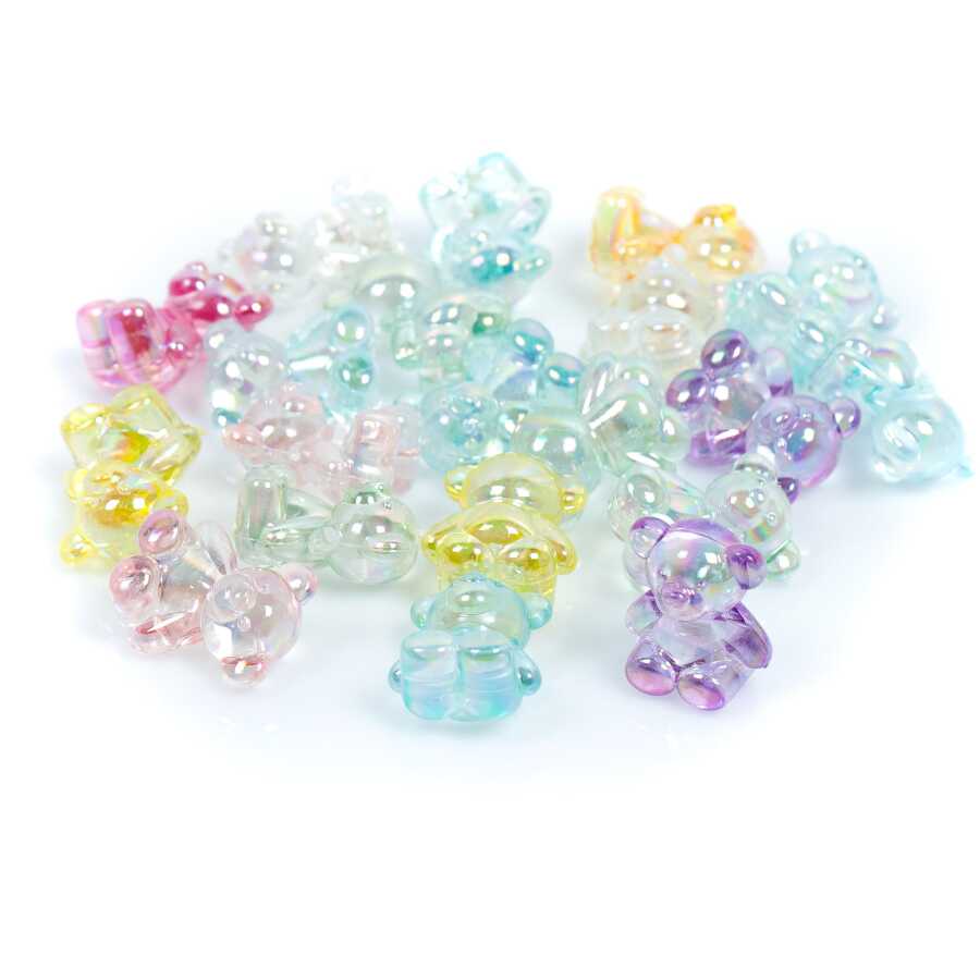 25 Gram, 19 mm Janjanlı Karışık Renk Ayıcık Plastik Boncuk, 1 Kalite Akrilik Boncuk (25 gram - 15 Adet)