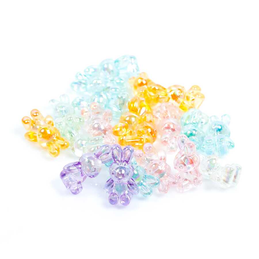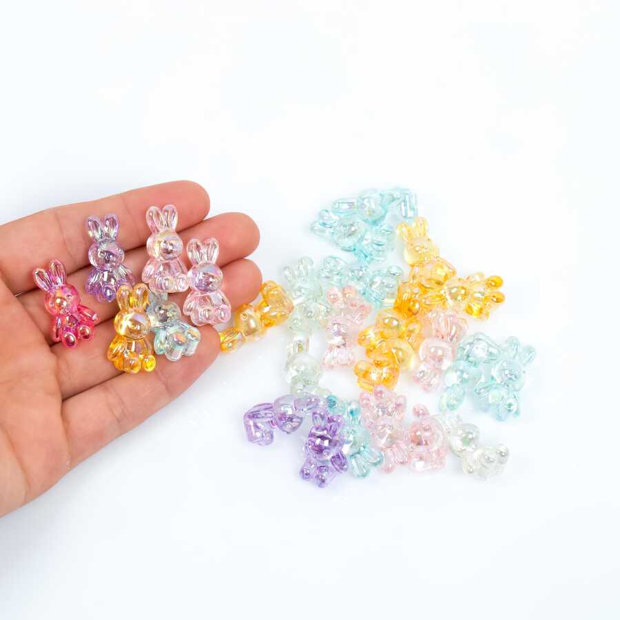 25 Gram, 25 mm Janjanlı Karışık Renk Tavşan Plastik Boncuk, 1 Kalite Akrilik Boncuk (25 gram - 15 Adet)