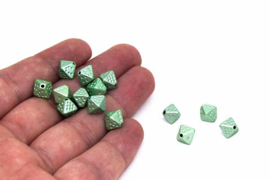 25 Gram - 7x9 mm Piramit Desen Boncuk, Su Yeşili Renk, Plastik Boncuk. 1. Kalite ( 25 Gram - 100-105 Adet )