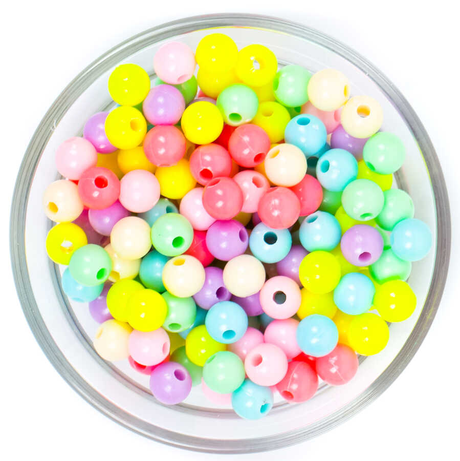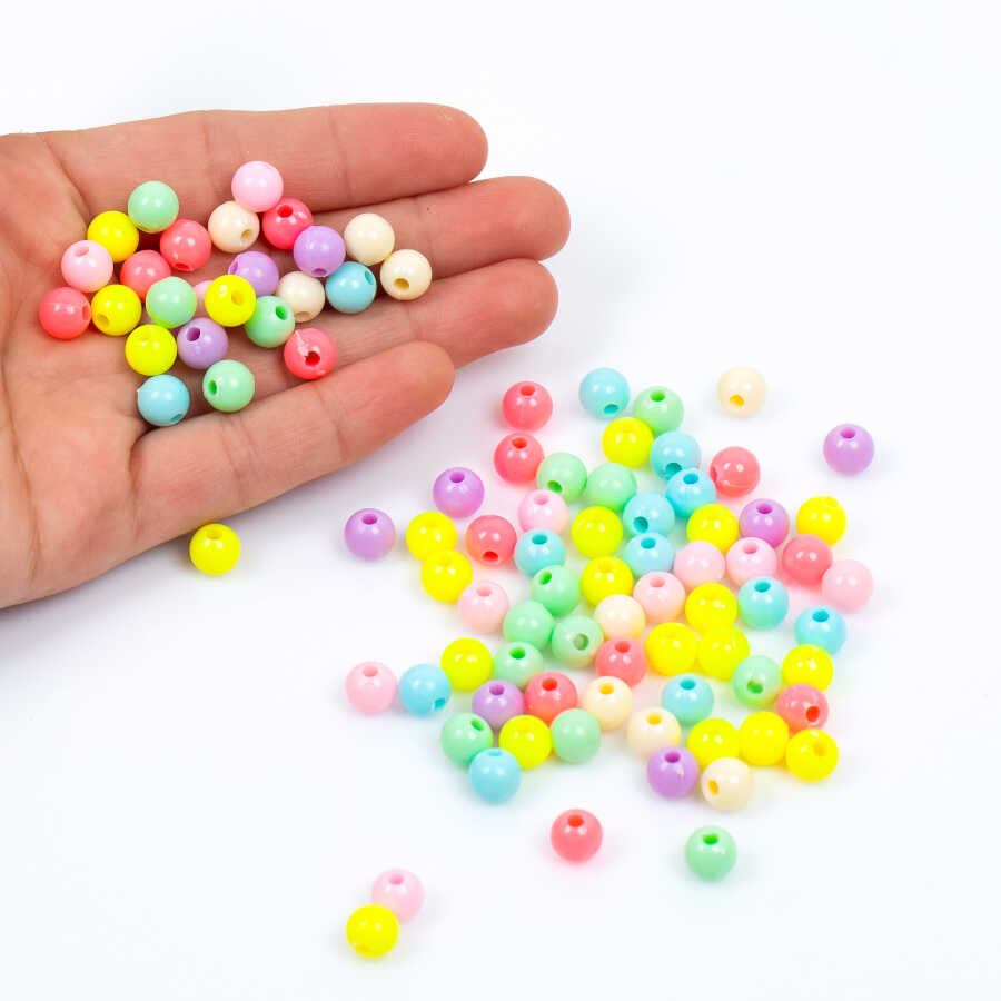 25 Gram - 8 mm Pastel Karışık Renkli Yuvarlak Plastik Boncuk, ( 25 gram - 90-95 Adet Arası )