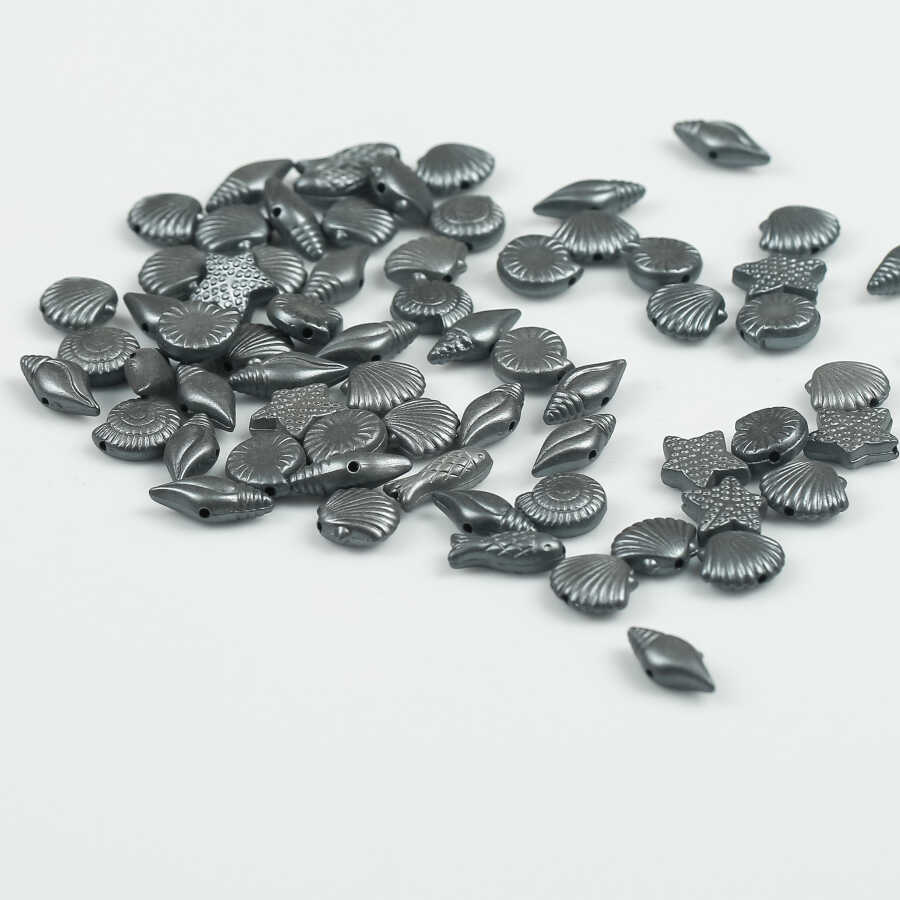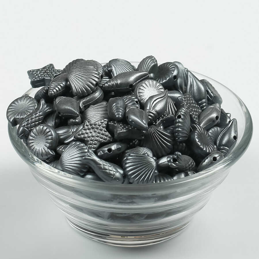 25 Gram - Karışık Deniz Ürünleri Figürlü Plastik Boncuk, Parlak Hematit Renkli ( 25 Gram - 73-76 Adet )