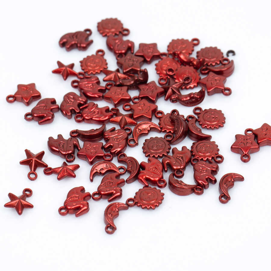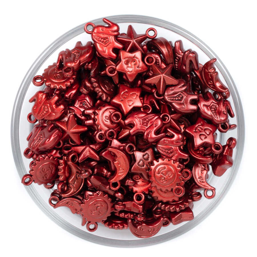 25 Gram - Karışık Figürlü Kulplu Plastik Boncuk, Soft Kırmızı Renkli, 1. Kalite ( 25 gram - 75-80 Adet Arası )
