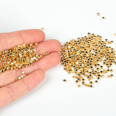 2.5 mm Pirinç Üzeri Altın Kaplama Küp Boncuk, 1. Kalite Kararmaz Metal Küp Boncuk, (3 GRAM ~ 45 ADET)
