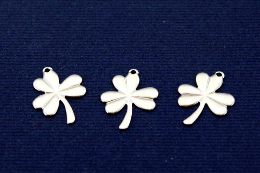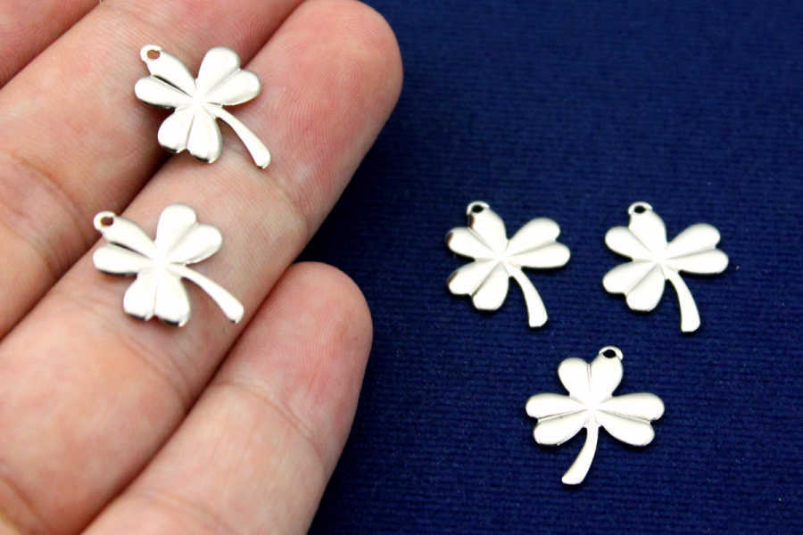 6 Adet- 14x17 Mm Yonca Desenli Pul, Takı Malzemesi, Metal Pul, Nikel Kaplama, Pirinç #1307n