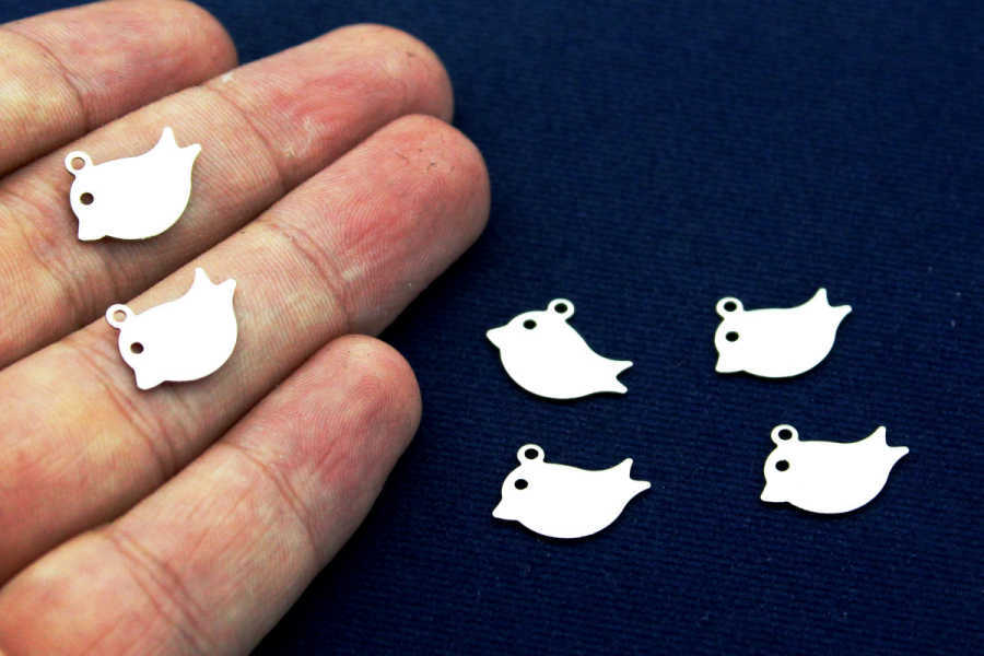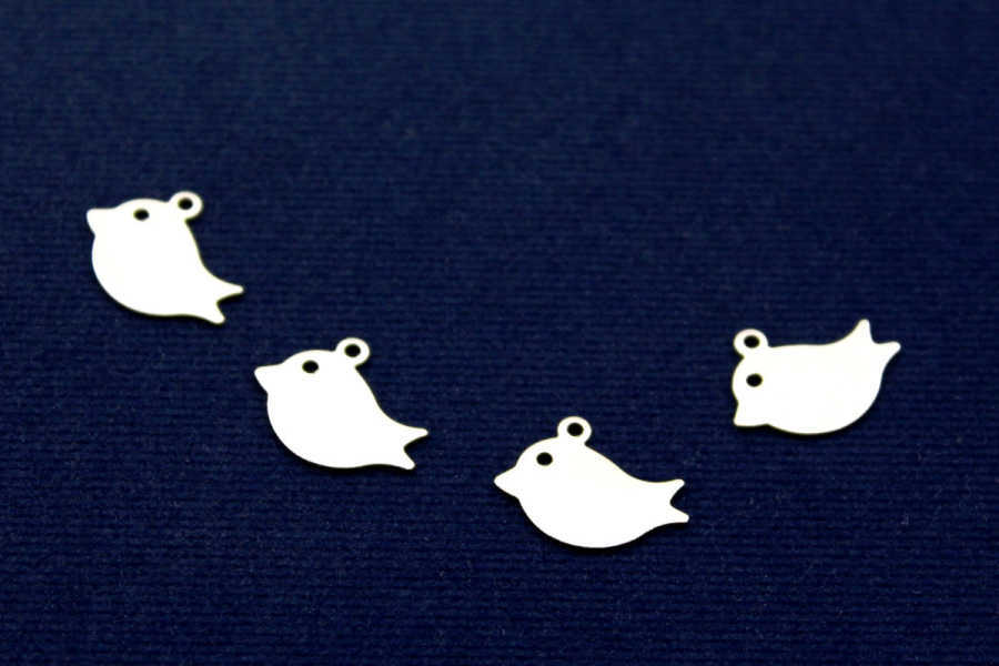 8 Adet- 12x15 Mm Kuş Desenli Pul, Takı Malzemesi, Metal Pul, Nikel Kaplama, Pirinç #1292n