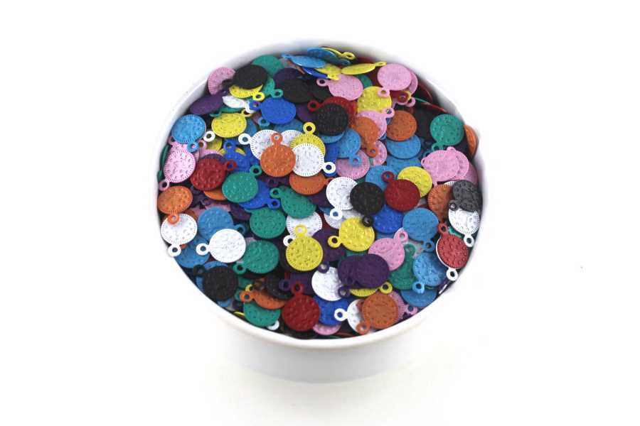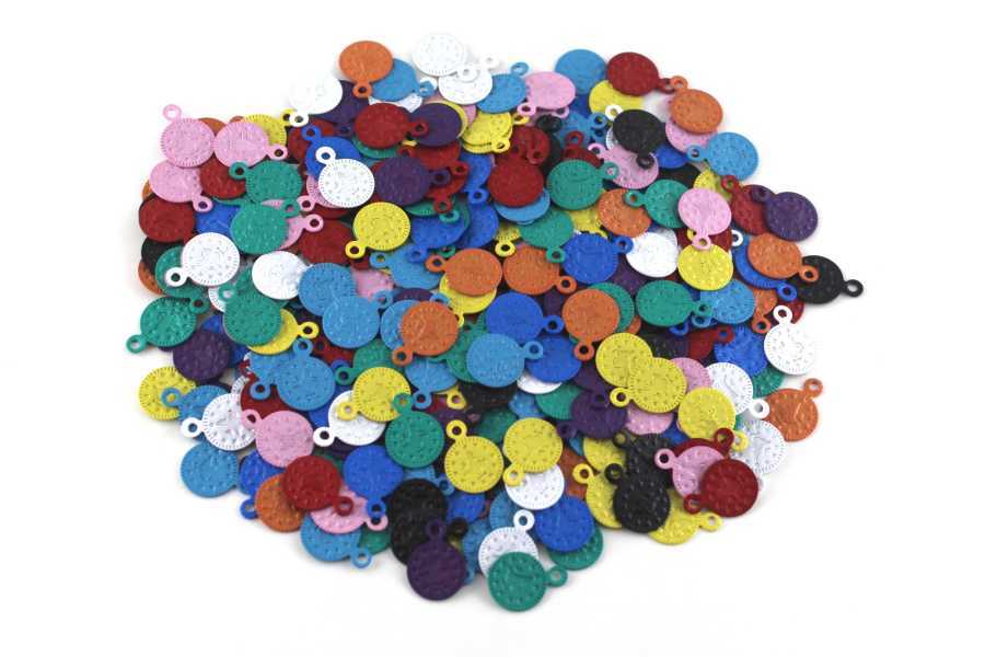 5 Gram - 5x12 Mm Yuvarlak Desenli Renkli Metal Pul, Takı Malzemesi, Pirinç Pul, (38-40 Adet Civarı)